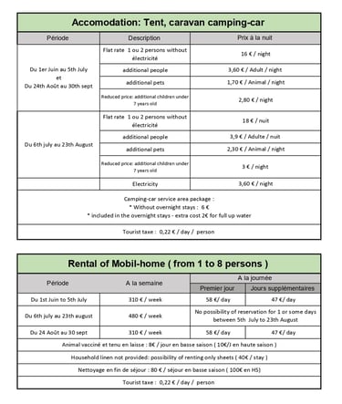 Unlike large traditional campsites, here, the spirit of authentic camping is preserved. Our space is mainly reserved for tents, guaranteeing calm and conviviality. Only a mobile home is available for rent, making our campsite a real refuge for lovers of traditional camping.