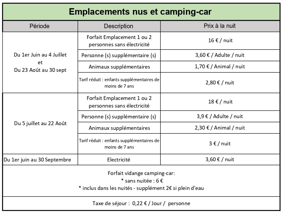 Que vous soyez de passage pour une nuit ou en vacances prolongées, notre camping vous promet une expérience inoubliable, entre nature, détente et convivialité.