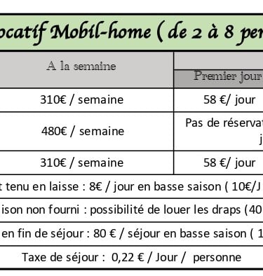 Mobil-home de 2 à 8 personnes de 28m² comprenant :